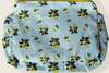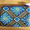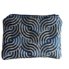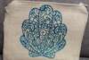 Petite pochette en toile de jute avec un magnifique flocage coquillage, tissus Intérieur en coton blanc et bleu.