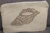 Petite pochette en toile de jute avec un magnifique flocage coquillage, tissus Intérieur en lin blanc.